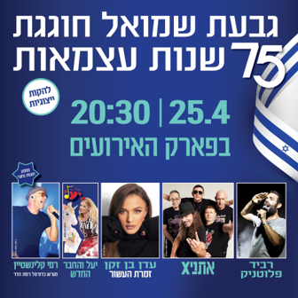 בערב יום העצמאות, יום שלישי, ה-25.4 החל מהשעה 18:00 ועד לתום מופעי העצמאות