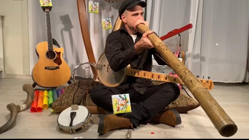 בתמונה : חגי רז מנגן בדיג'ידו כלי נגינה אוסטרלי ולידו כלי נגינה נוספים גיטרהועוד