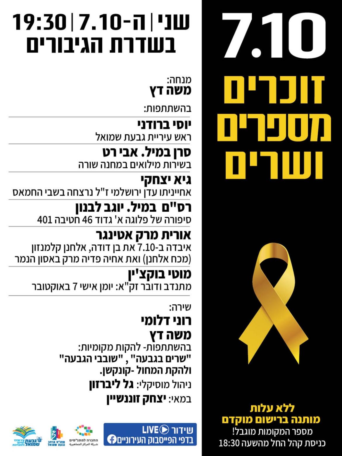 יום שני 7.10 בשעה 19:30 בשדרת הגיבורים