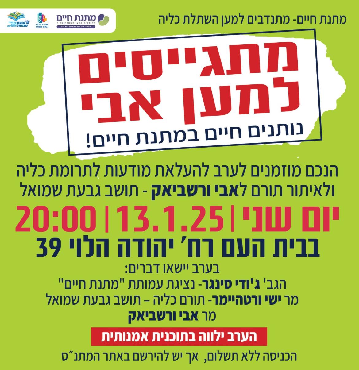 יום שני 13/1/25 בשעה 20:00 בבית העם ,רחוב יהודה הלוי 39