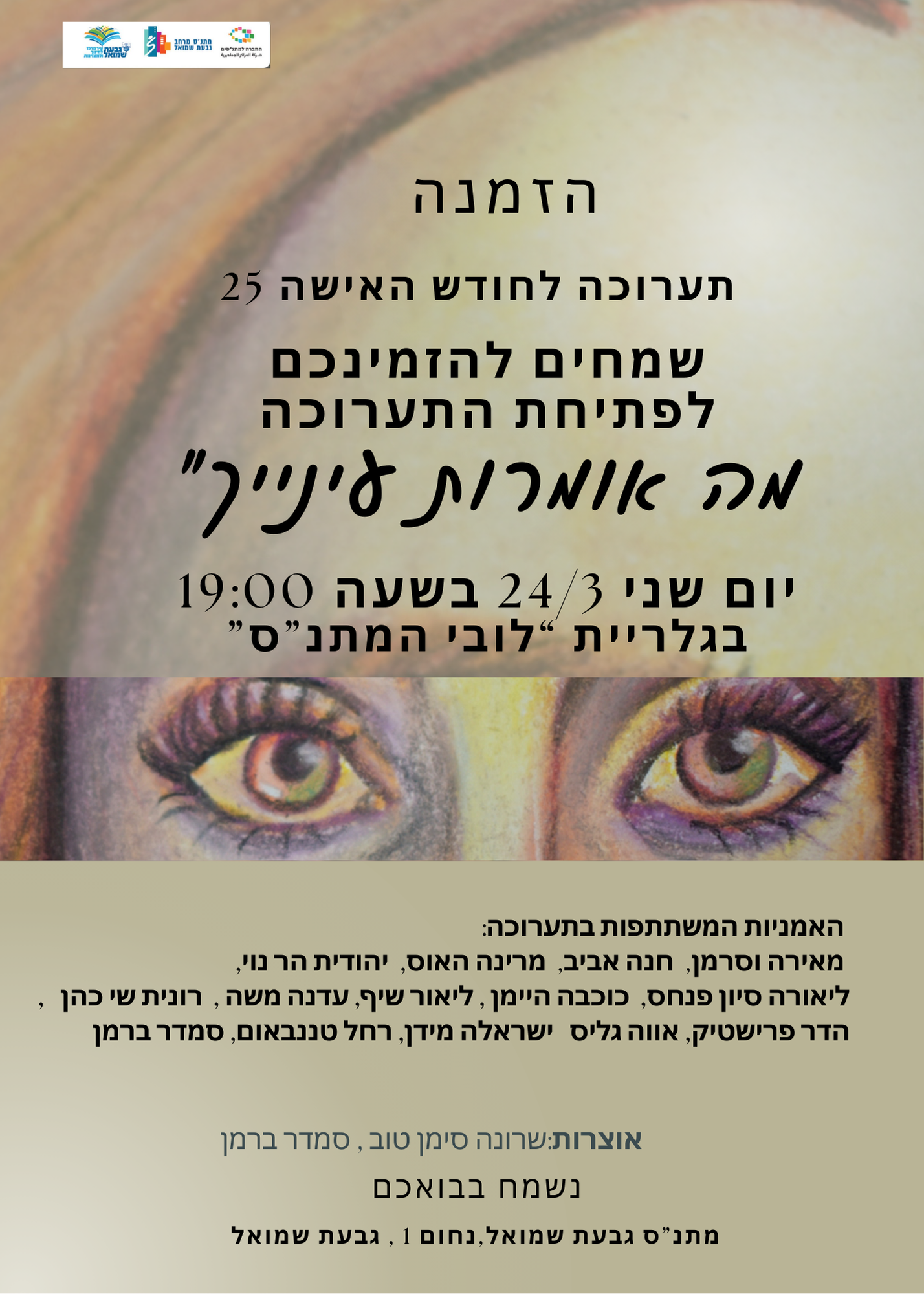 שמחים להזמינכם לפתיחת התערוכה “מה אומרות עינייך"