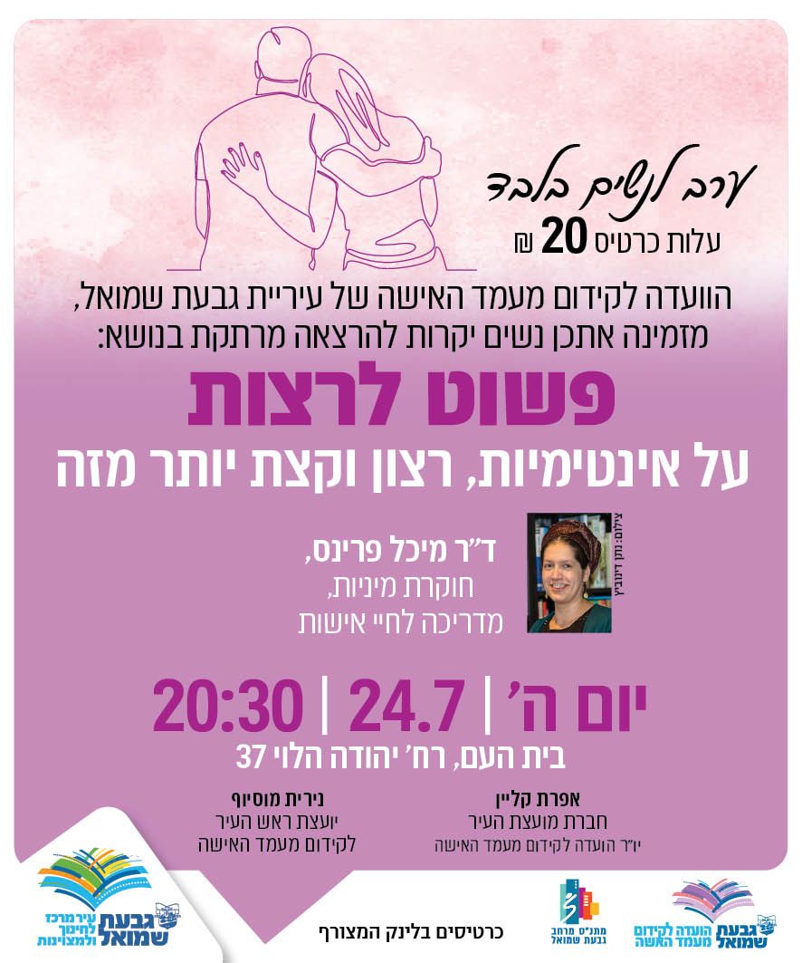 מרצה: דר מיכל פרינס - חוקרת מיניות ומדריכה לחיי אישות