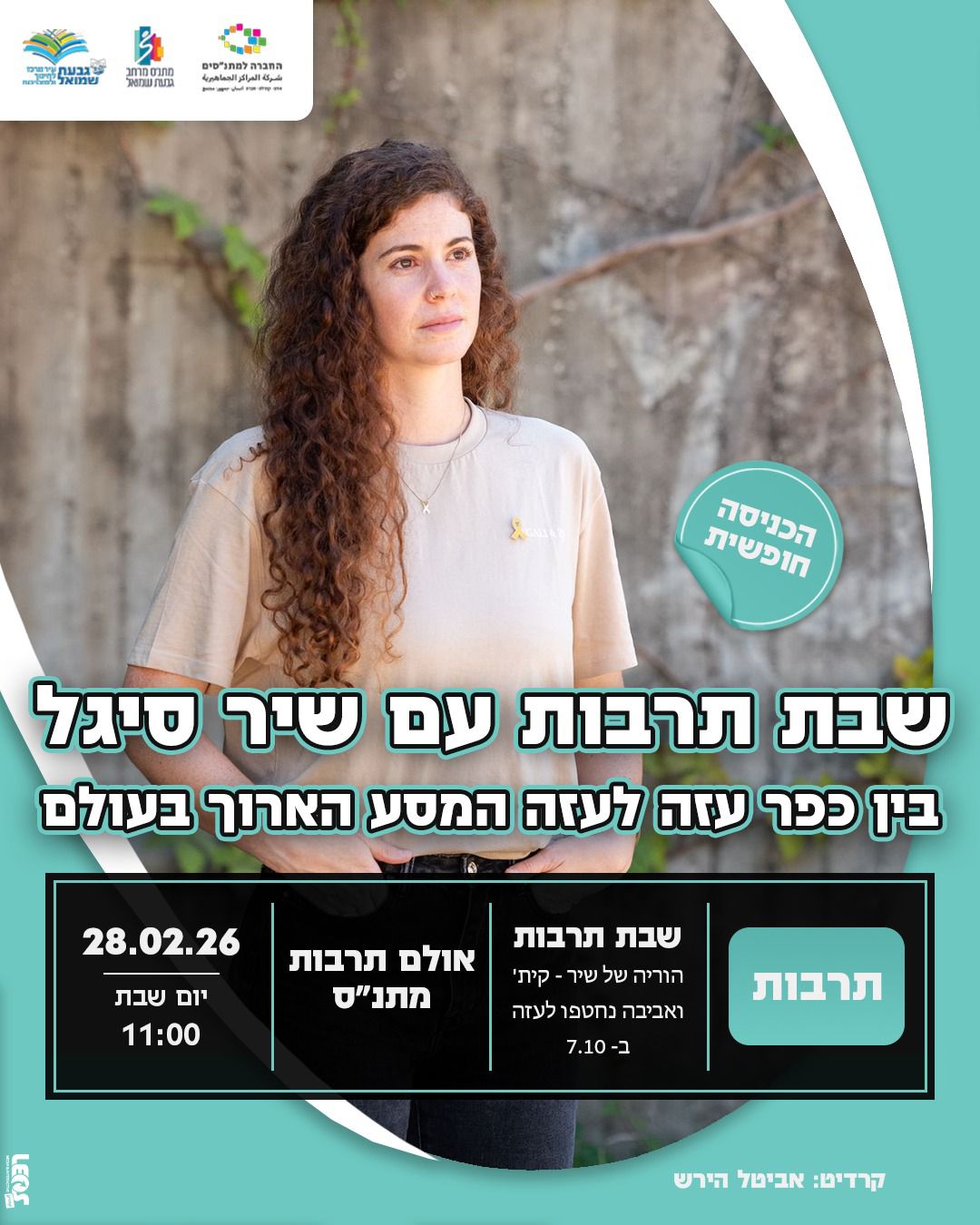 שבתרבות עם שיר סיגל - "בין כפר עזה לעזה -המסע הארוך בעולם"