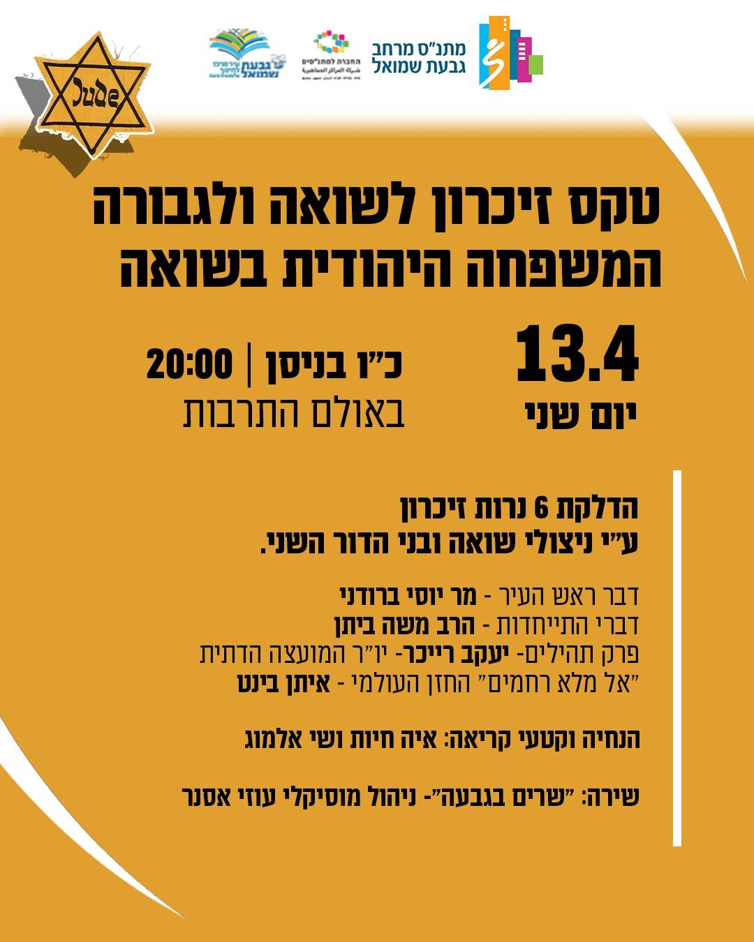טכס זיכרון לשואה ולגבורה 2026