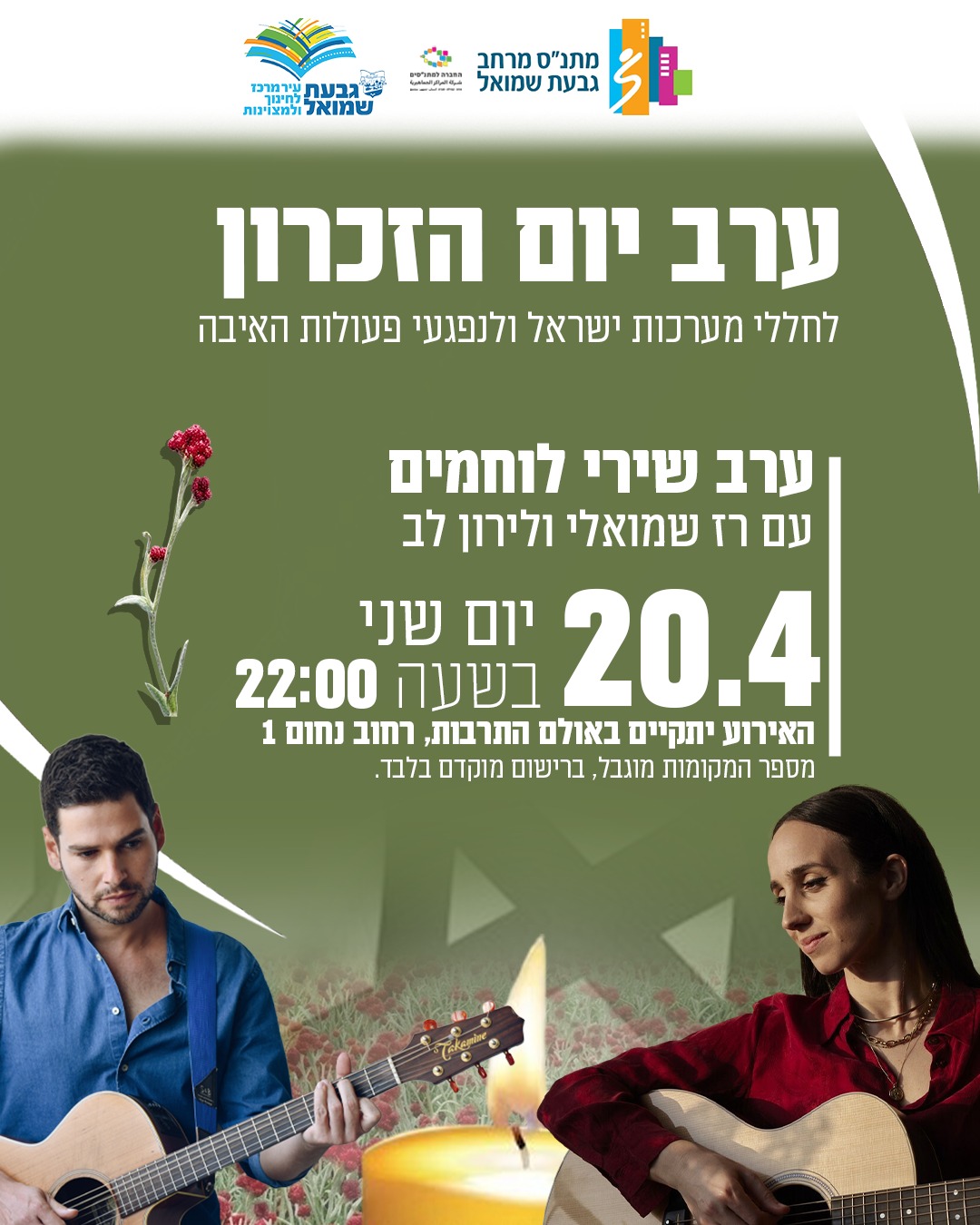 האירוע יתקיים באולם התרבות , מתנ"ס גבעת שמואל , רח נחום 1