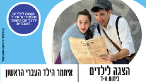 12 ינואראירועים - מופעים והצגותהצגה לילדים - "איתמר הילד העברי הראשון" לרגל יום השפה העברית