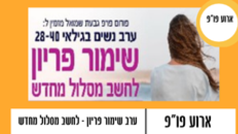13 נובמבראירועים - מופעים והצגותפו"פ גבעת שמואל - ערב שימור פריון - "לחשב מסלול מחדש" לנשים 28-40
