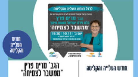 10 נובמבראירועים - מופעים והצגות"ממשבר לצמיחה " הגברת מרים פרץ - כלת פרס ישראל ואשת חינוך