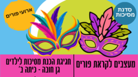 04 מרץאירועים - מופעים והצגותסדנת פורים להכנת מסיכות -גן חובה-כיתה ב'
