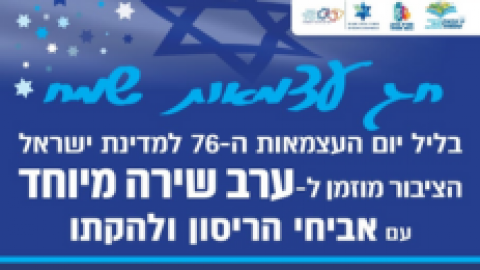 13 מאיאירועים - מופעים והצגותערב שירה בציבור לכבוד עצמאות