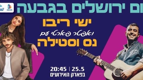 25 מאיאירועים - מופעים והצגותיום ירושלים בגבעה - עם ישי ריבו ,נס וסטילה